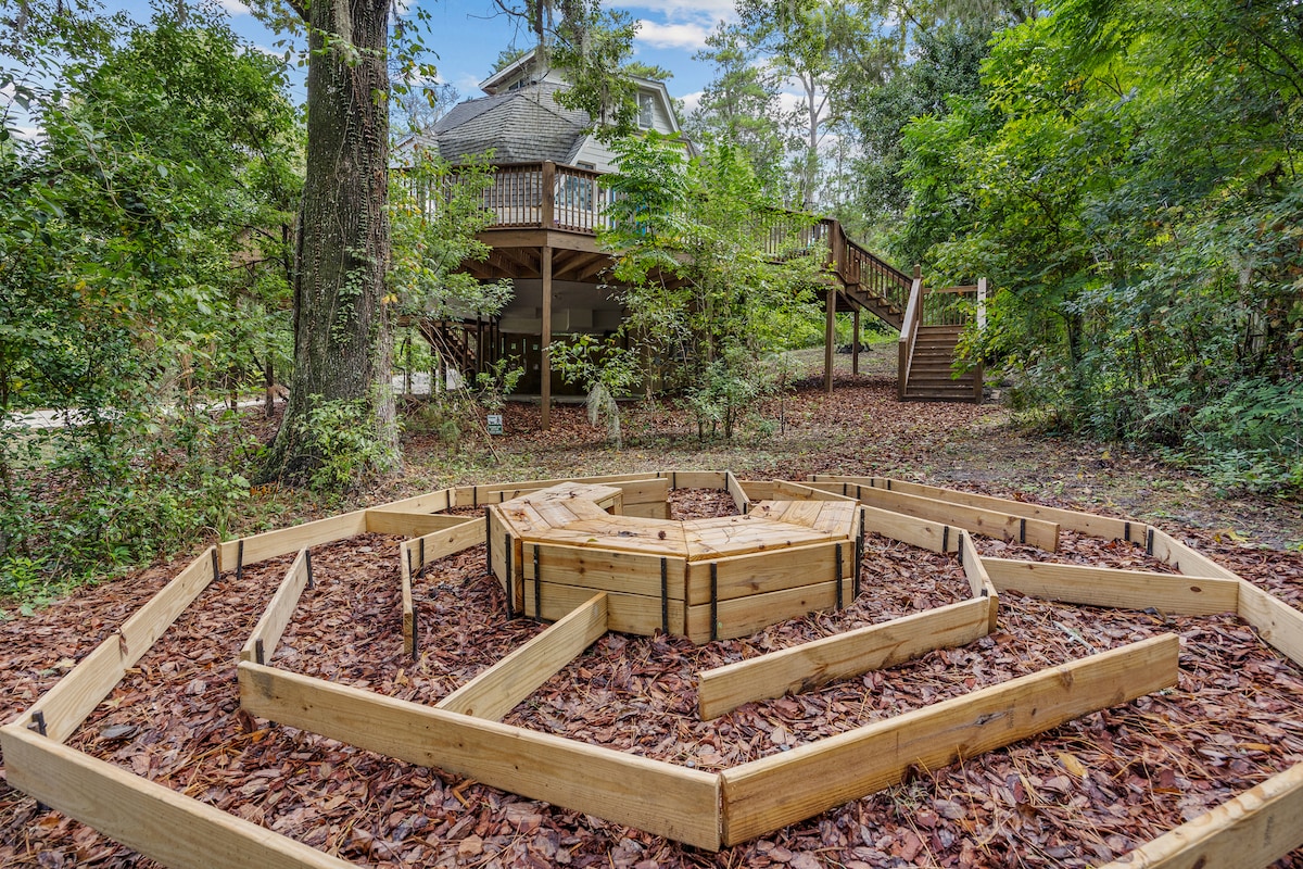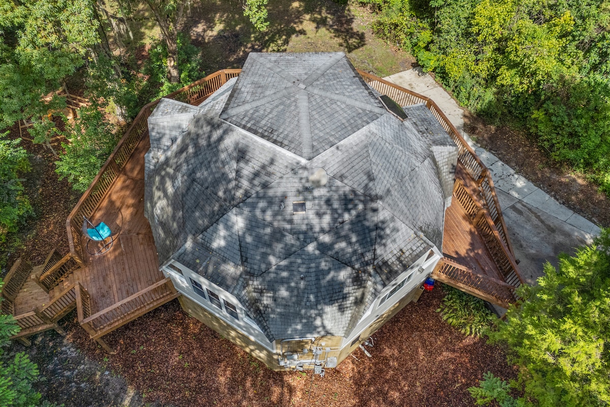 GainesvilleStay in a Gainesville gem—a dome house with a wraparound porch, outdoor dining, and peaceful nature views! With 3BR/2BA and room for 8, it’s perfect for families, game day groups, or weekend escapes. Cook up favorites in the fully stocked kitchen, stream and work with fast WiFi, and unwind in the spacious living areas. Just minutes from UF, downtown, and hospitals, this one-of-a-kind retreat blends comfort, convenience, and a fun vibe you won’t find anywhere else.